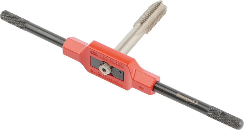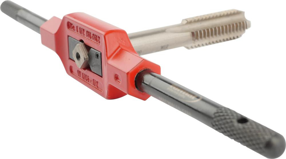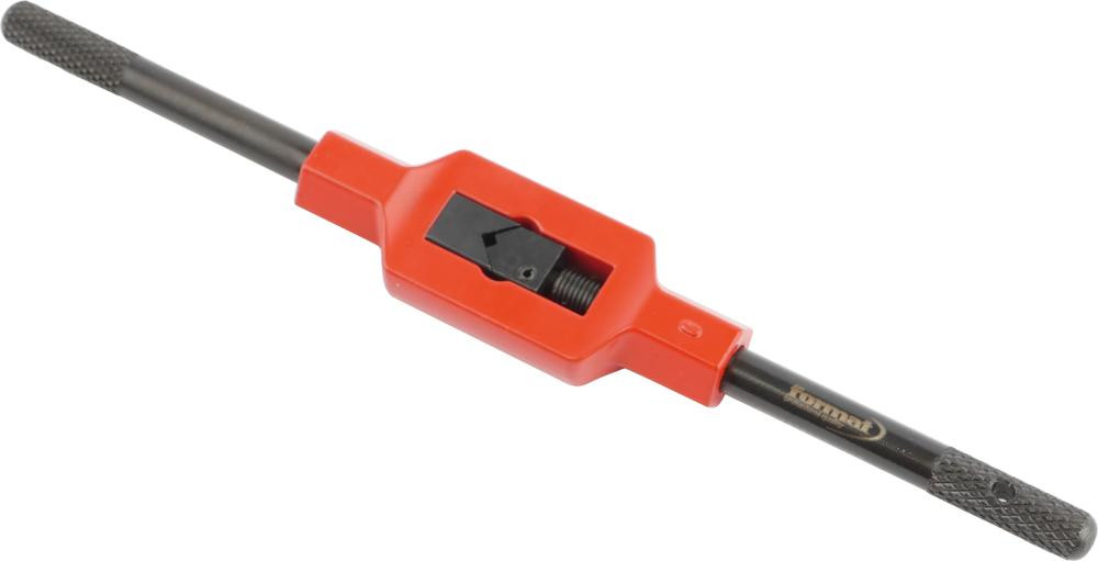 Applications : pour tarauds à main avec entraînement carré. Le dévissage d'un bras en acier permet l'utilisation dans les endroits difficilement accessibles.